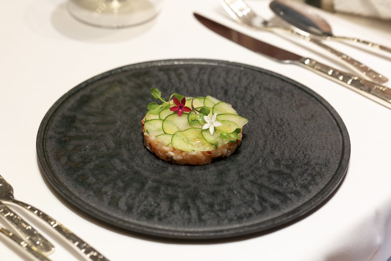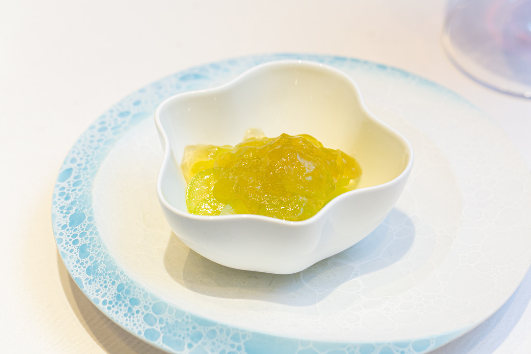 オマール海老の昆布締めと森部さんの四葉胡瓜 | 菊鹿ワイナリー 菊鹿エステイト ゲヴュルツトラミネール