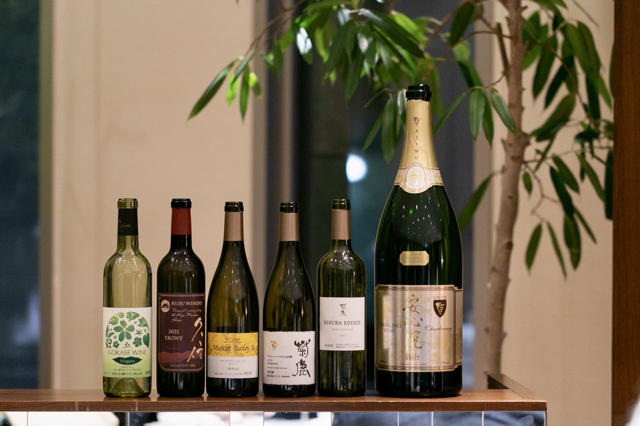 ワインは、岩田屋店の4周年に合わせて、今九州で注目される4つのワイナリーから6アイテムが用意されました。ワイナリーの方々とリーデル九州チームとのご縁があってこそご提供いただけた特別なアイテムが並びます。