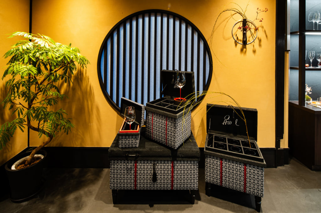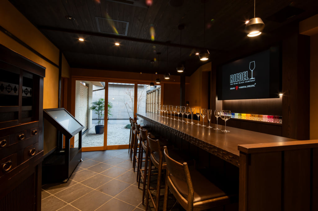 歴史ある建物に新たな息吹を吹き込み、古き良き京町屋の「趣」を大切に残しながら、リーデルの現代的なエッセンスを加えた店内は、伝統とモダンが重なり合う特別な空間です。