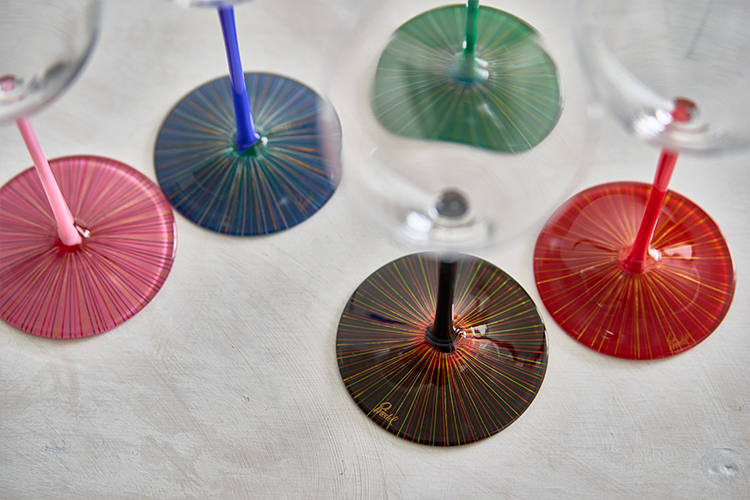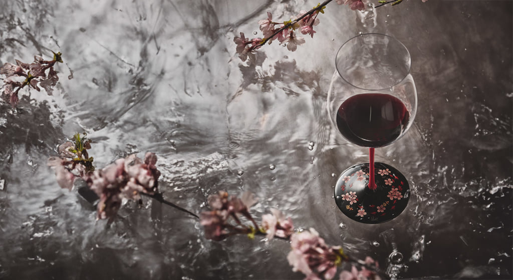 日本の伝統技術「漆塗り」とリーデルが融合した「HANABI」は、世界に名だたる漆塗りの技法でグラスの台座に花火のような絵柄を描いた芸術性の高いワイングラスであり、その芸術的な台座は長野県塩尻市・木曽平沢の丸嘉小坂漆器店の女性塗師によって繊細かつ鮮やかに描かれています。